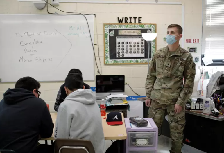Reuters:新墨西哥州国民兵走进教室,暂代教师工作