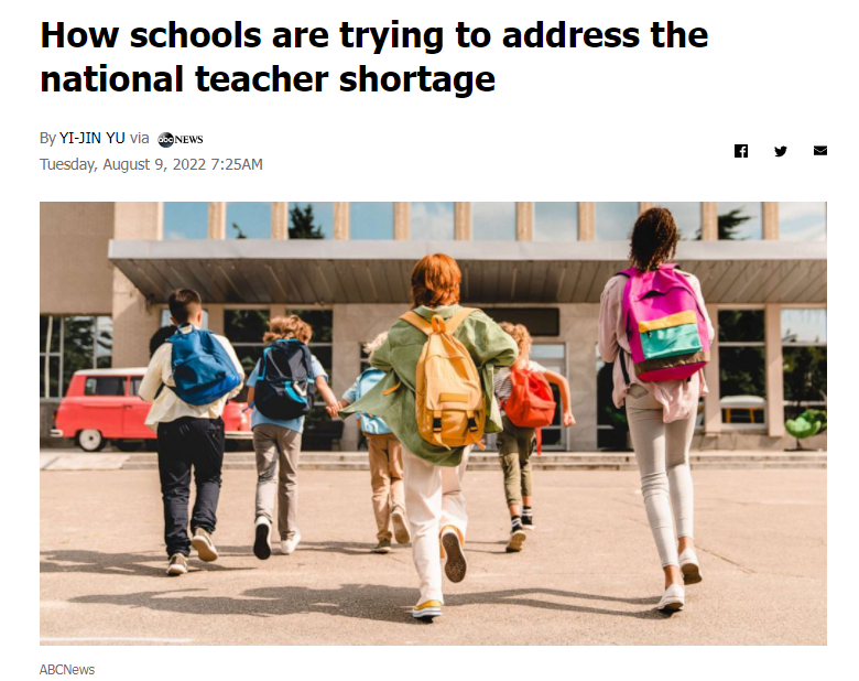 据 The Washington Post 报导,教师缺额的情况几乎遍布全国各地,尽管没有全面的详实数据,但是州内教师缺额数千名已非孤例,部分地区的紧迫程度,甚至需要改成每周上四天课,或是请求大学生支援等。