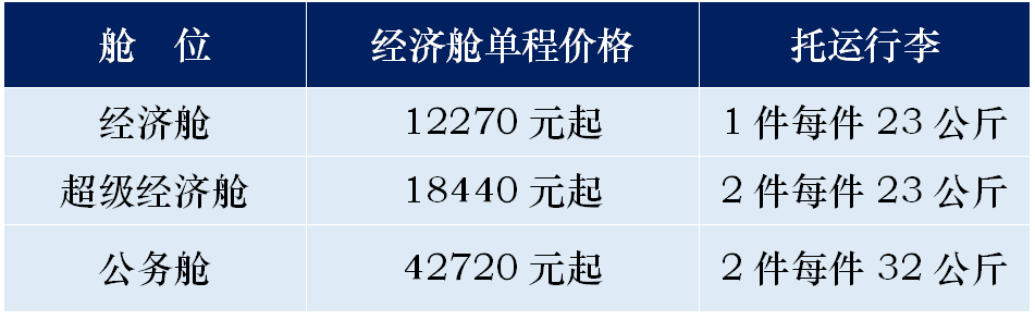 3. 留学生经济舱可享受2件行李,每件23公斤托运行李。