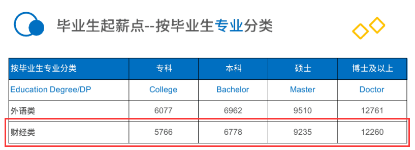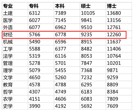 此外,我们从2021 年《全国毕业生起薪点薪酬报告》中也可以看到,财经类毕业生的职场起薪在14个专业大类中处于头部水平,本科起薪点为6,778 元,硕士9,235元,博士可达到12,260元。