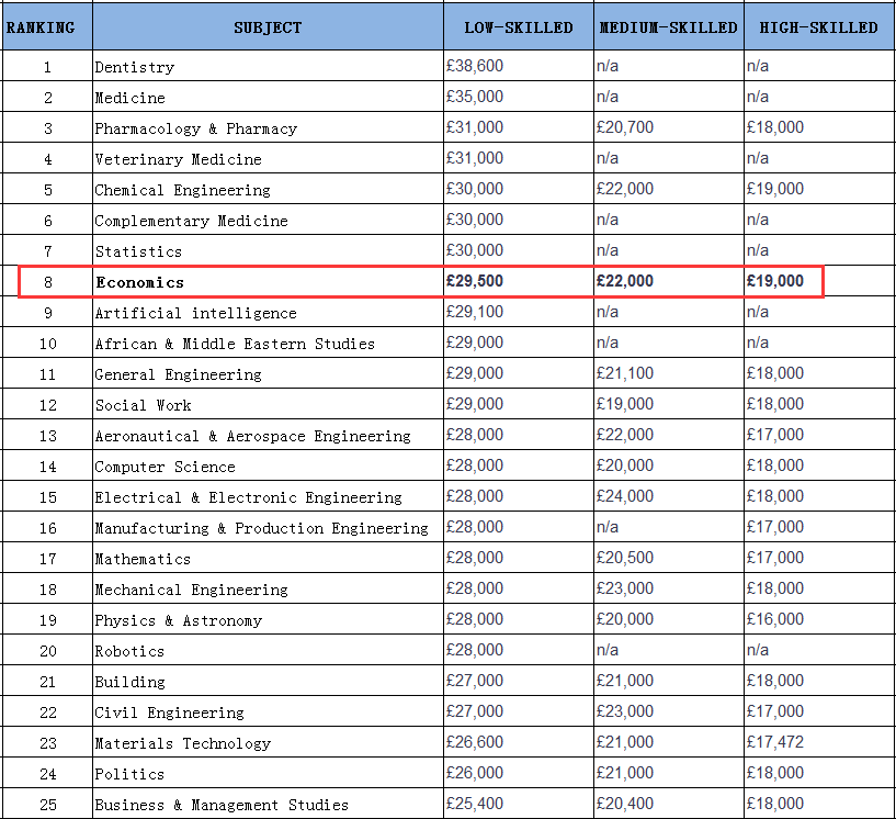 据英国教育部门相关数据统计,经济学专业毕业生的起薪大概在1.9万至2.95万英镑之间,与医学、工程学、计算机科学一起,位列毕业后薪资收入最高的专业之一。