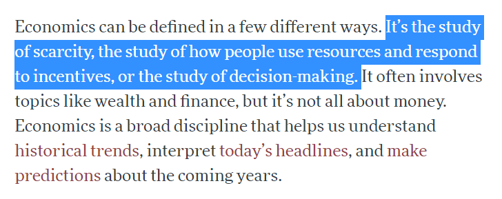 而能通过研究回答以上问题,并解释相关概念的学问,都是经济学(Economics)。