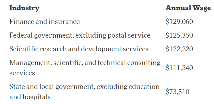 前五大收入最高的行业则包括了金融保险业、联邦政府机构、科研发展、管理及科技咨询服务、州及当地政府部门。