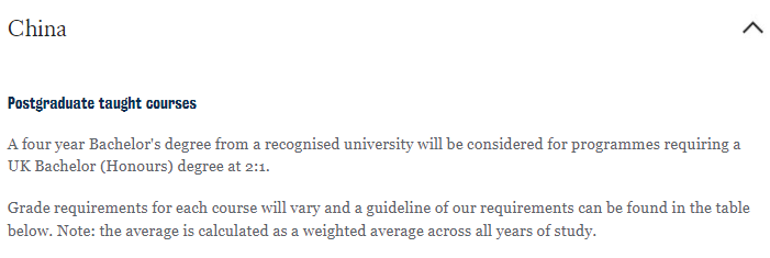 申请英国本科成绩要求为 2:1 学位的专业,大学本科四年平均成绩需达到 90% 以上;