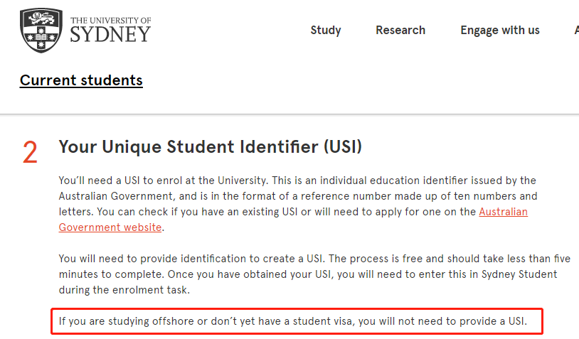 毕竟,澳洲政府官网的说法还是,如果目前是在澳洲境外接受澳洲高校网课的同学,是不需要申请 USI 的。