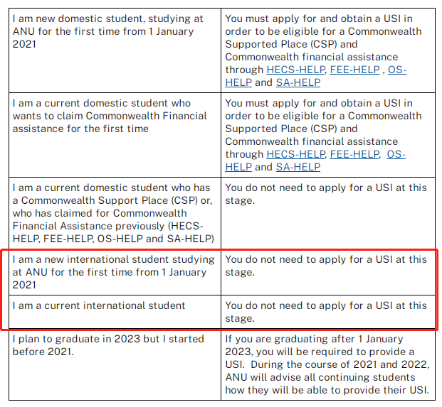 不过,澳洲国立大学还分了好几种情况解释,我们来看一下关于国际学生的内容: