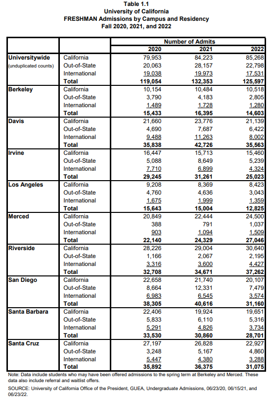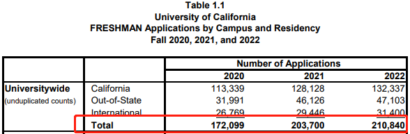 根据公开数据显示,2022 年,加州大学一共收到了 251,179 份秋季入学申请,与去年同期的 249,855 份申请相比,增长了 0.5%。