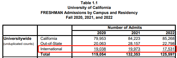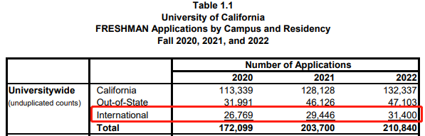 不管如何,加州系大学疯狂缩减国际生名额的举动,其实受影响最大的就是中国学生了,今年夏天,加州大学发布的 2021-22 年学生数据报告显示:加州系大学在中国广受学生们的好评,本科国际生中超半数为中国学生。所以国际生名额缩减,中国学生将是损失最惨重的!
