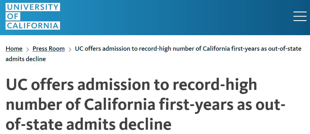 然而,人类的悲欢并不相同。扩招针对的是加州本地学生,不仅如此,而且这些扩招名额还会挤占州外学生(包括国际生)的名额。