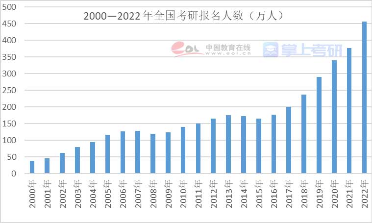 国内考研人群庞大,竞争日趋激烈。历年数据如下图所示:
