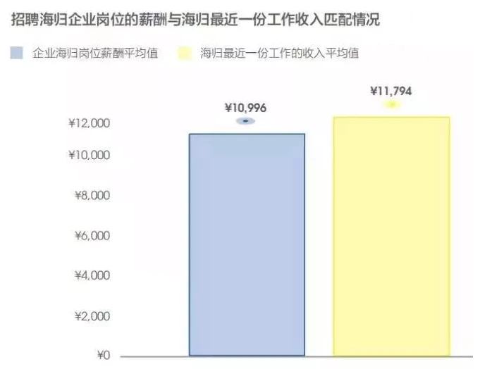 而企业招聘海归的平均月薪为 10,996 元,大部分海归最近一份工作的收入平均值接近 12,000 元。