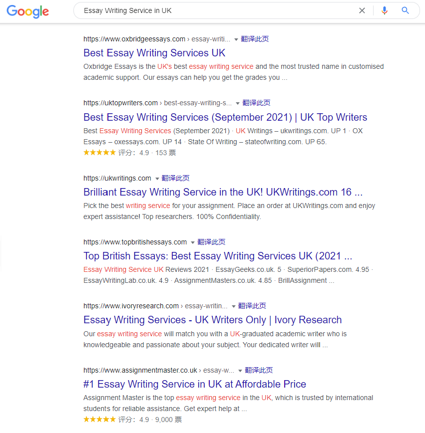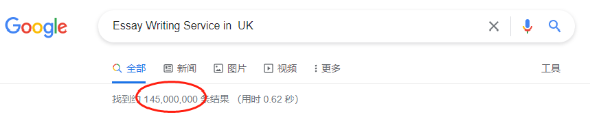 在 Google 浏览器搜索 Essay Writing Service in UK,就能找到 145,000,000 条结果。