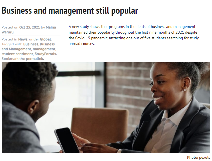 无论是国内就读还是出国留学,商科一直是最热门的专业之一,根据 The Pie News 近日的报道,尽管全球疫情大流行,但商科领域的课程在 2021 年依然很受欢迎,吸引了五分之一的学生寻找出国留学课程。
