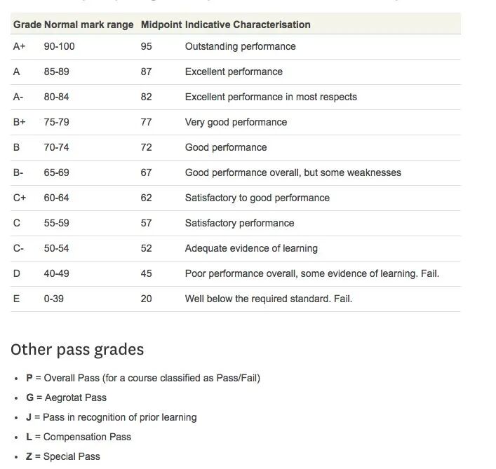 新西兰是九分制的哦,9是A+ 90-100,8是A 85-89, 是A- 80-84, 6是B+ 75-79, 5是B 70-74, 4是B- 65-69,3是C+ 60-64, 2是C 55-59, 1是C- 50-54。见下图。