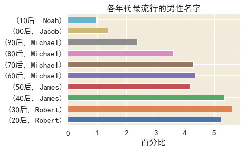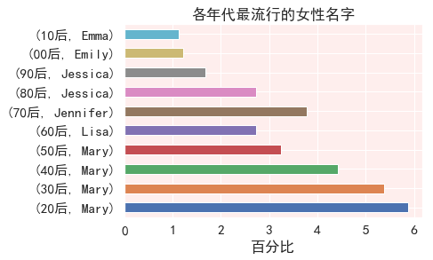 (图片说明:横轴是该名字人数在每个年代所占总数的百分比)
