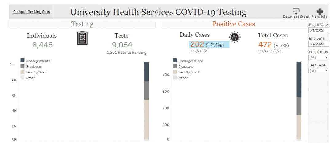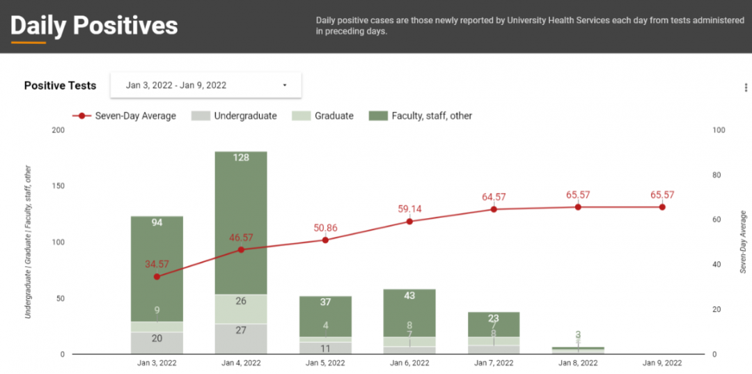 而加州知名大学 UCB(加州大学伯克利分校)过去一周新增确诊 472 例,其中 1 月 7 日当天新增确诊 202 例。