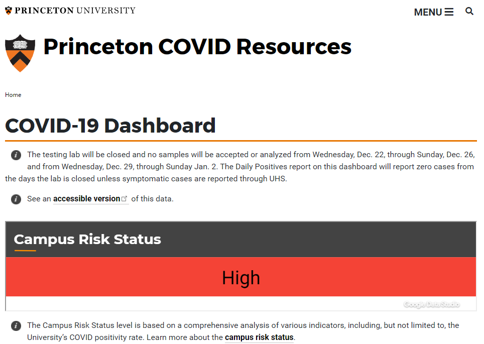 普林斯顿大学的官网上至今显示的还是红色警报(高风险)。