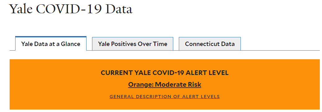 而耶鲁大学的校园疫情警报为橙色(中风险)。