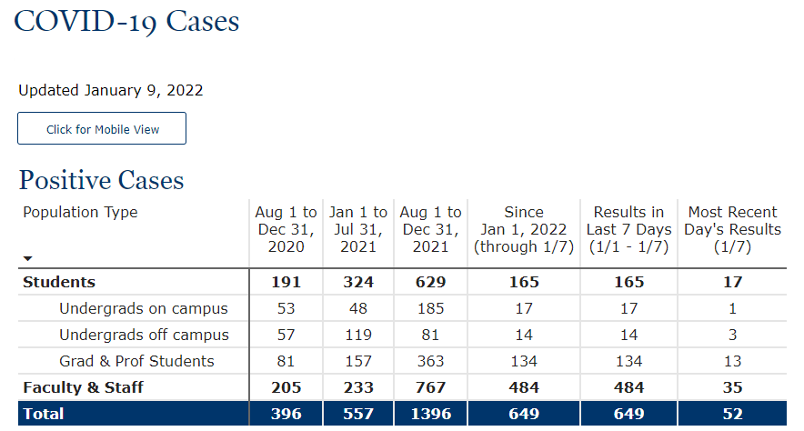 从耶鲁大学官网的新冠疫情最新数据可以看到:在 2022 年的第一周,耶鲁累计确诊病例为 649 例。