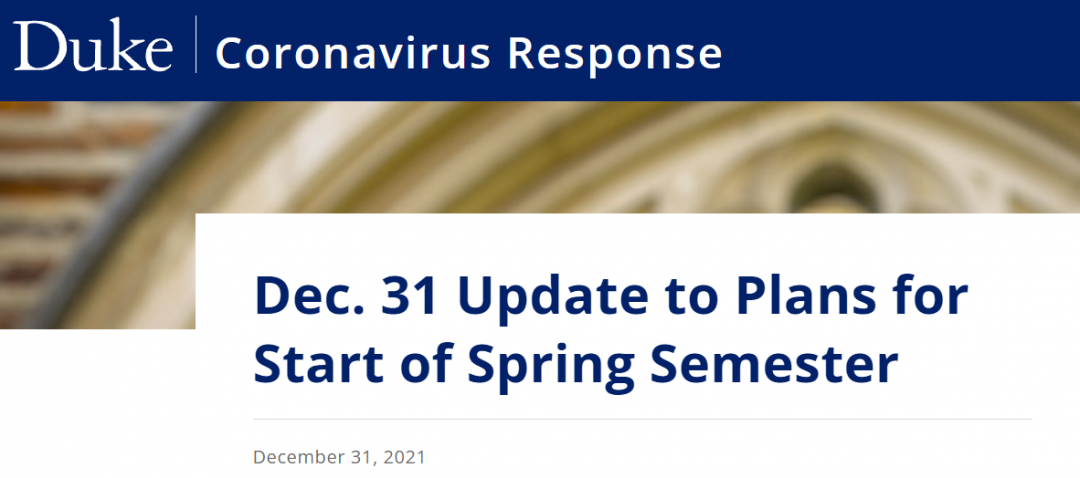 2021 年 12 月 31 日,杜克大学正式官宣春季学期计划: