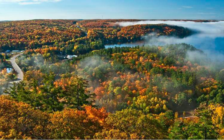 公园内有参差的悬崖、近千个湖泊、长满青苔的沼泽以及大片浓郁幽深的森林,是户外运动爱好者们的天堂。然而如果想要探索深处的阿冈昆,那么是需要人们选择徒步或者是划桨的方式进去的。