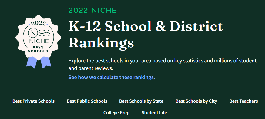 Niche 排名被称为美国的“大众点评”选校网站,主要是依据数十万学生和家长对学校的评价对学校进行打分。排名涉及了全美所有的私立中学,包括寄宿学校、走读学校、男子学校、女子学校等,信息非常全面。