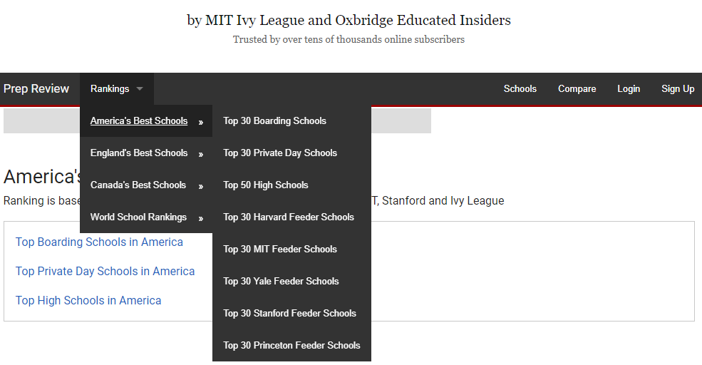 除了美国的中学,PrepReview 对英国、加拿大的中学也有专门的排名,另外还有一个全球中学排名。不过,查看 PrepReview 排名是收费的哦~