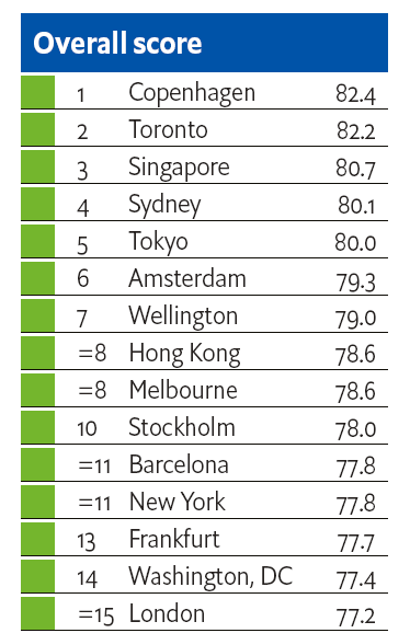 根据经济学人智库(EIU)发布的《2021年安全城市指数报告》,我们可以看到,丹麦首都哥本哈根以82.4的总分成为2021年世界上最安全的城市,领先于多伦多(82.2分)和新加坡(80.7分)。