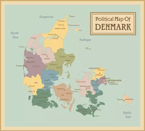 丹麦,位于欧洲大陆的西北端,北部与挪威和瑞典隔海相望,南部同德国接壤。首都是位于西兰岛的哥本哈根。