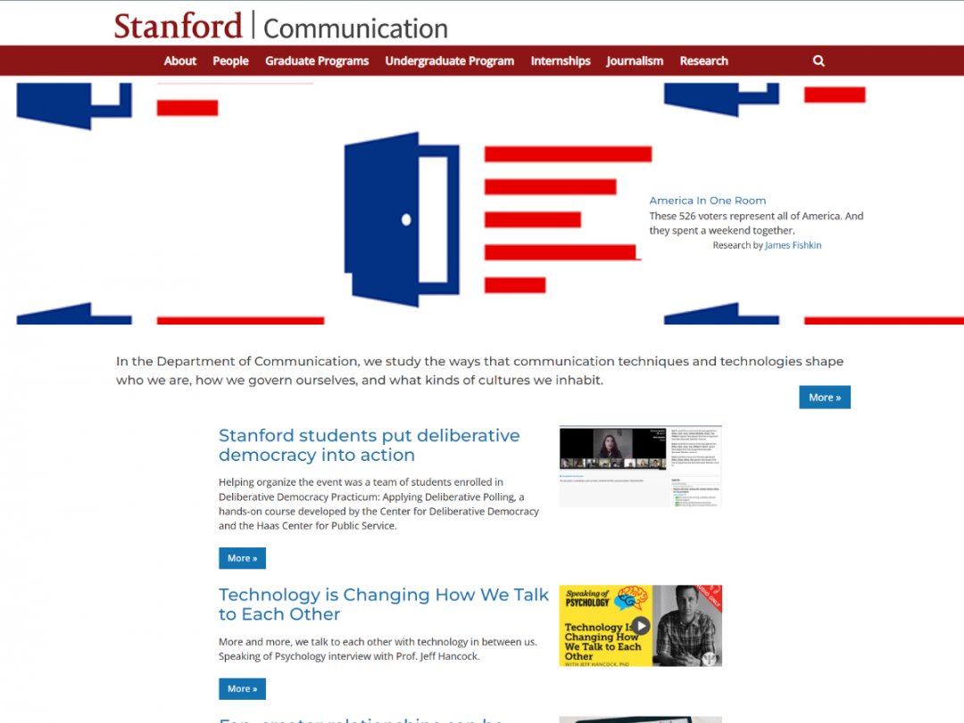 斯坦福大学的传播专业主要培养学生使用定量和定性的研究方法分析传播过程,技术以及媒体对社会、文化和心理的影响,并关注三个问题:新闻业如何塑造政治生活?媒体如何与人类心灵互动?媒体技术和实践的变化如何随着时间的推移而影响文化变化?学生可以在多个层面探索这些问题,并获得实习等实践机会。