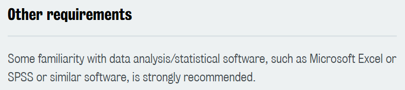 因为课程中涉及大量的定量、统计分析及计算机软件应用主题,因此,申请人如果在定量分析、统计学领域有相关经验会比较有优势。