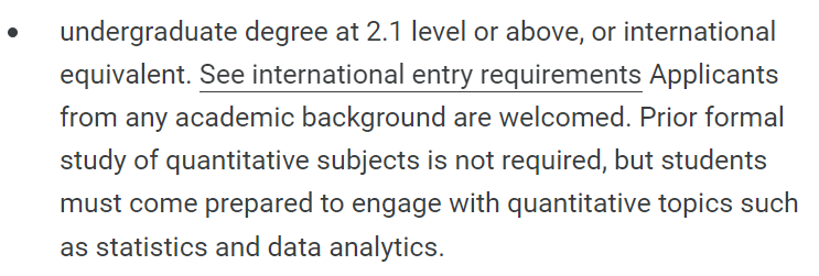 一般对学生专业背景没有特定要求。比如,LSE 的 MSc Marketing 项目就表示:不需要申请者事先对定量科目进行正式学习,但学生必须准备好参与统计和数据分析等定量主题。