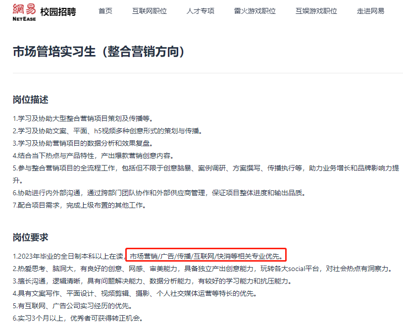 如今,互联网行业对市场研究、营销等的人才需求越来越大,产品、运营、市场、销售、用户研究、商业分析都可以申请,具体岗位包括:Digital Marketing Specialist(数字营销专家)、SEO(搜索引擎优化)、SEM(搜索引擎营销)、Marketing Analyst(营销分析师)等。这部分岗位的职责主要是将互联网技术与市场营销相结合,运用网络传播,多平台推广企业产品。