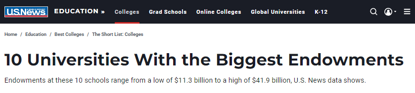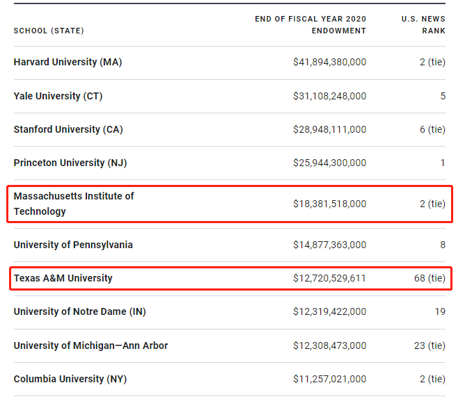 一项调查专门跟踪了美国 TOP100大学的十年校友捐赠情况,结果显示:没有统计上的显著证据表明“传承录取能增加任何一个校友的捐赠可能性”。事实上,在全美拥有最多捐赠基金的院校榜单上,早在十多年前就禁止了 Lagacy Admission 的麻省理工学院和德州农工大学,分别以 183 亿美元和127亿美元位列第 6 和第 8。