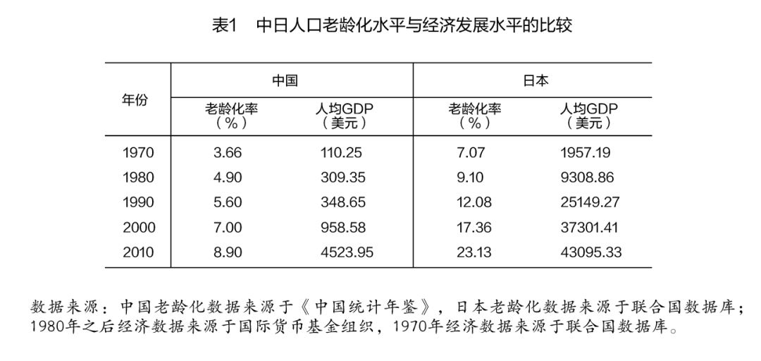 与发达国家不同,中国由于人口生育控制政策的强力实施,人为地加快了人口转变进程与老龄化速度,导致还未富裕便进入老龄化社会。日本与中国同处东亚儒教文化圈,两者的年龄结构变动及人口老龄化进程具有高度相似性。