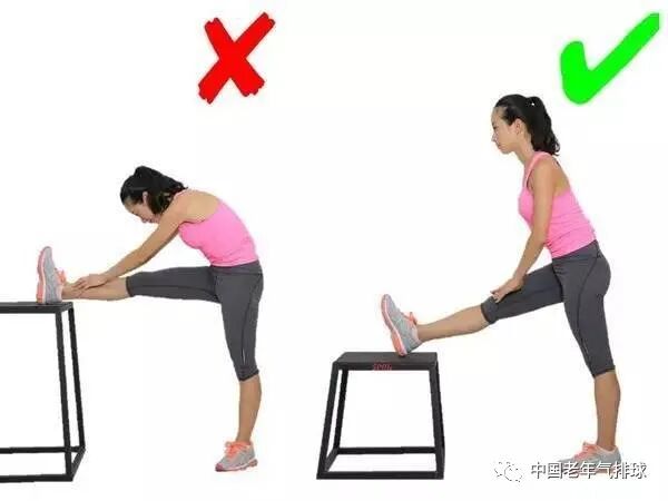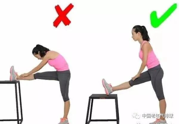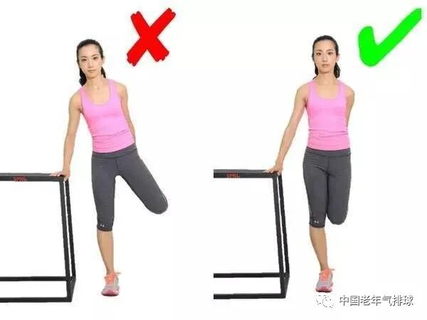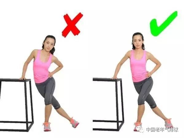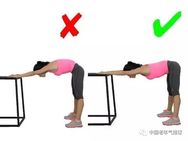容易弯腰驼背造成脊柱的过大压力,同时容易拉伸强度过大。这一动作应该找个适当高度的物体,有拉伸感但不觉疼痛就行,还要保持腰背挺直。