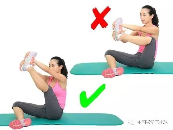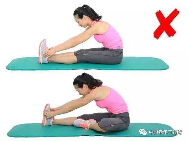 看看,你是不是就按下图这么拉的!?其实吧,这个动作并不是大腿后侧的最佳拉伸方案。下图那个才是坐姿拉伸的最佳方案,但是,弯腰弓背就不仅失去了效果,还容易造成脊柱的过大压力。
