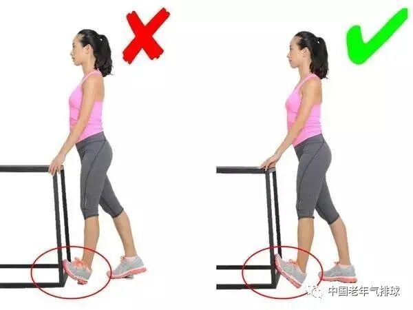 这个动作每个想瘦小腿的妹子都会做,这一动作,脚跟向下踩的同时,注意脚尖一定要朝向正前方!脚尖方向朝外既没有办法充分拉伸到小腿三头肌,还容易拉低足弓导致扁平足,是个严重的错误动作!