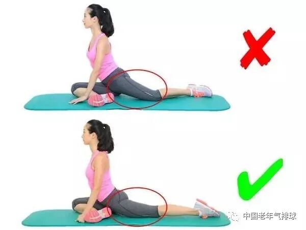 这也是常用的大腿的拉伸动作。错误动作的大腿有明显的外展!