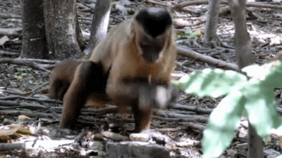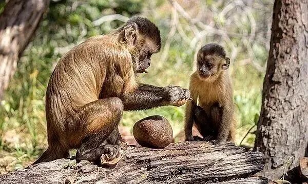 研究团队通过放射性碳测年和石制工具分析发现,黑纹卷尾猴这么做的历史可能已有3000年了。是除人类之外,另一个大规模使用石器的灵长类动物。