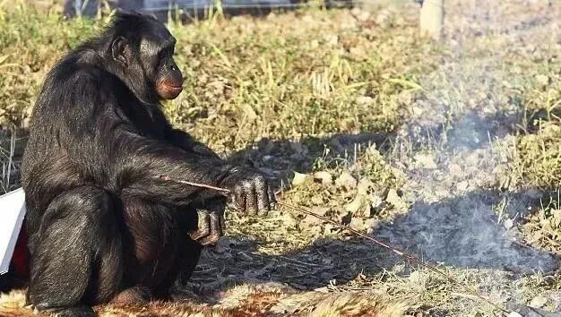 有个黑猩猩知道怎么用火柴,棉花糖吃够了,它就点燃一堆木材,然后用木棍窜起棉花糖,放到火上烤热再吃,这样别有一番风味。