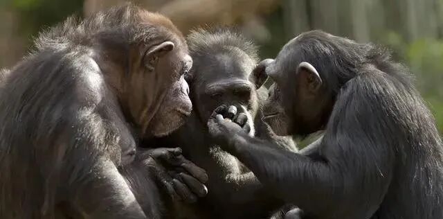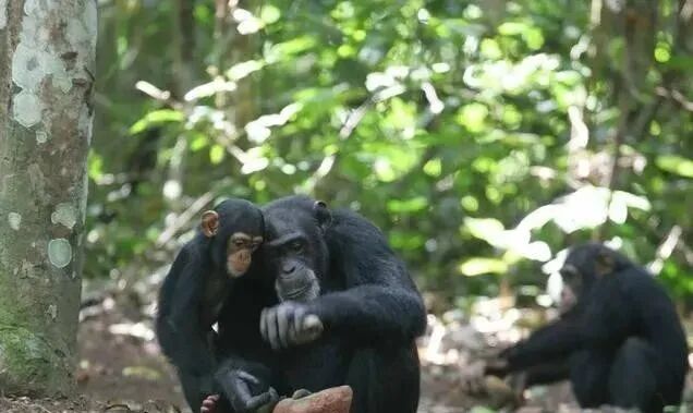 它们还会商量策略,怎么在树上集体狩猎猴子。有负责埋伏的、有负责哄吓的、有负责进攻的,配合完美。还会和别的黑猩猩发生战争,知道以多打少,知道出奇不意在下雨天袭击。