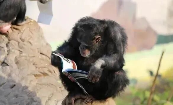 猩猩看漫画书,像不像咱们小时候看漫画书的感觉,连神态都神似。