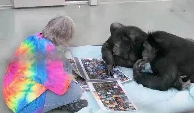 还有人专门研究猩猩有没有语言能力,发现它们喉结结构不利于发出多变的声音,所以没法说话,但是可以学会简单的手语。能学会近千个单词呢,组成简单的句子做交流,并且转头就教会了另外两个成年猩猩。