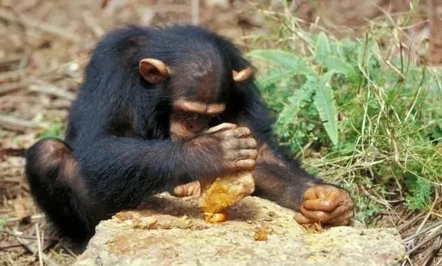 它又思考一下,看看别的成年猩猩都是用石头,它明白了,干果没问题那就是工具有问题。马上把木棒换成了石头,两下子就砸开了坚果,瞬间就悟道了。