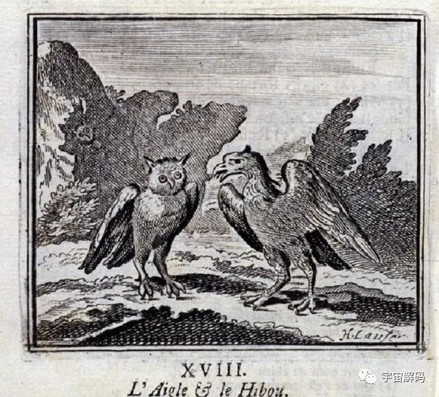 猫头鹰问向老鹰是否认得自己的孩子,老鹰回答不知道。”