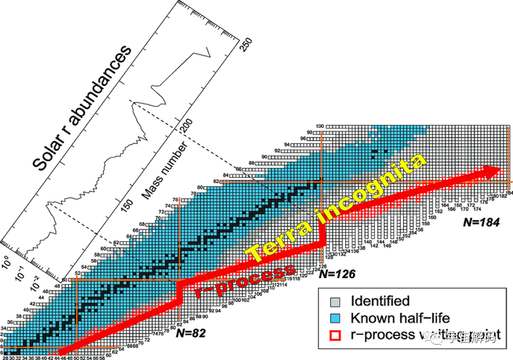 另外中子的爆发会让元素以极高的速度轰击铁原子,并让它们膨胀成更大的元素,这会让它们的变化速度超过自身的衰变速度,科学家把这种元素变化过程称之为“r过程”。