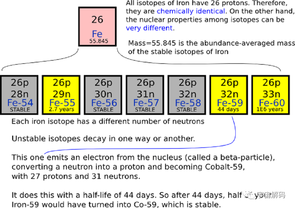 相关样本中,铁60和钚244的半衰期对比证明它们起源较晚。