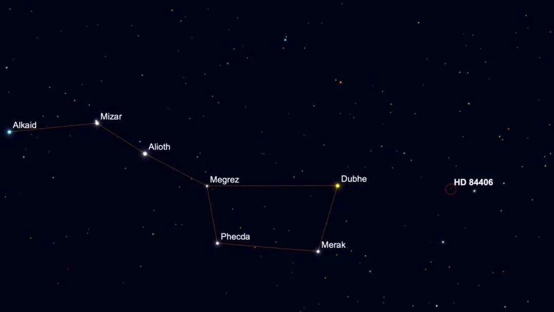 HD 84406距离地球约260光年,位于我们熟知的大熊星座,北斗七星就是这个星座的一部分