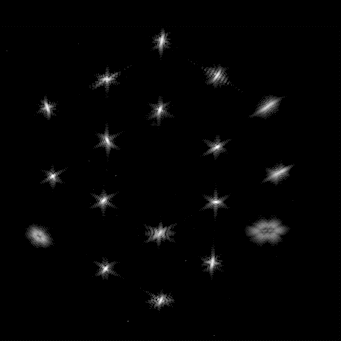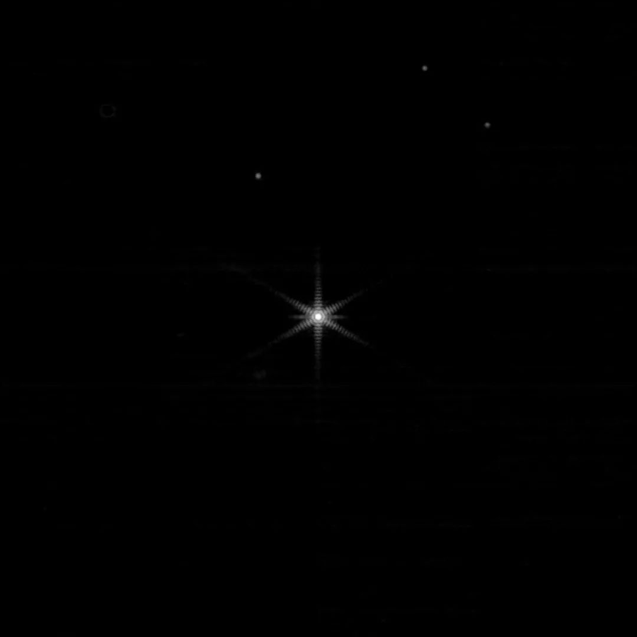 18个镜面拍摄到图像对齐在一起,最终只显示一颗星星,但是还略显模糊